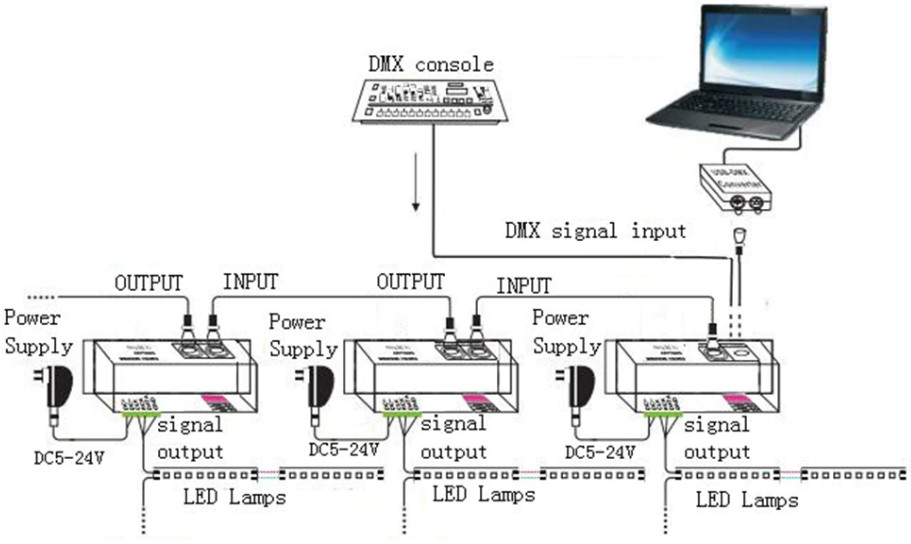 Giriş voltajı: DMX-SPI dekoder gelişmiş mikro kontrol ünitesi benimser,